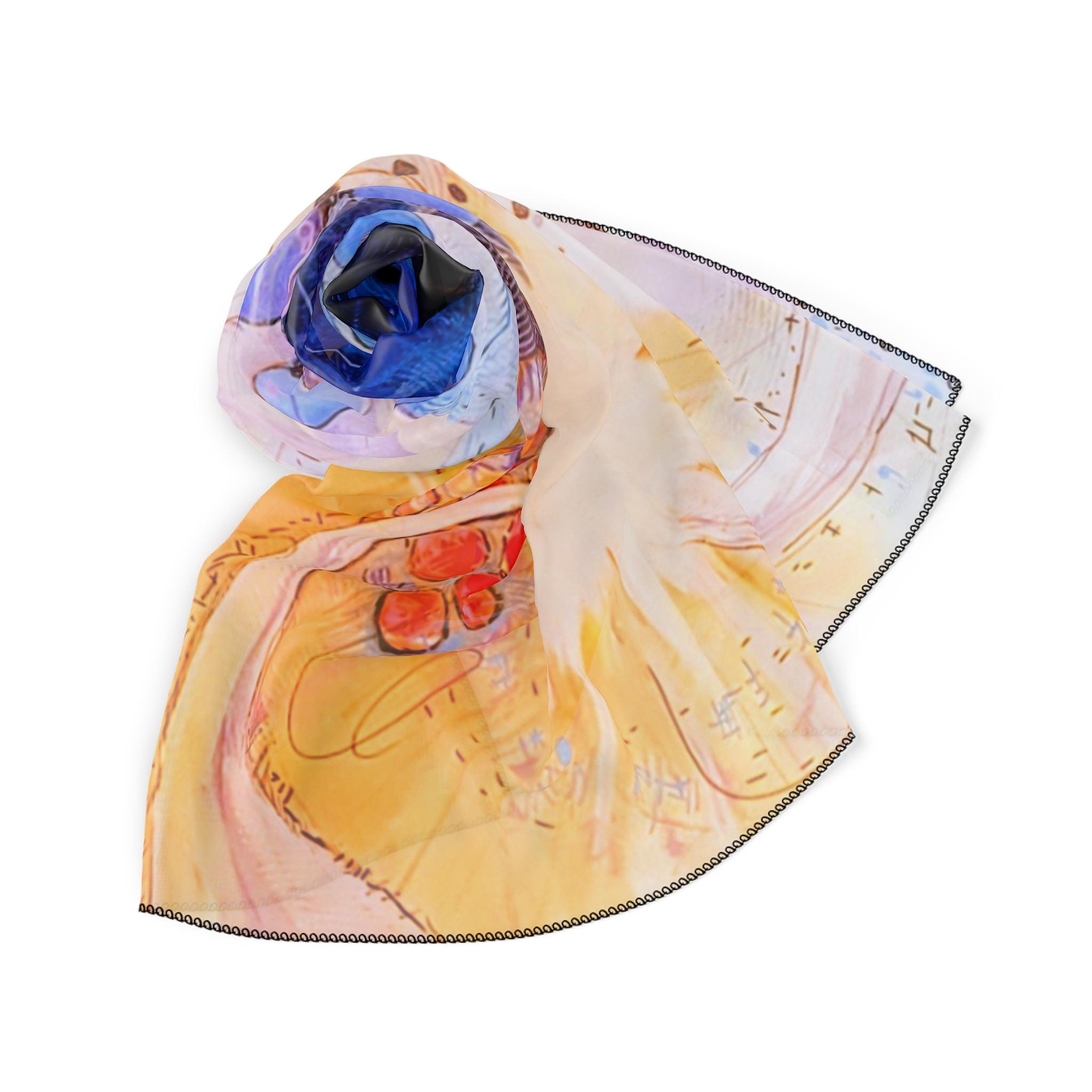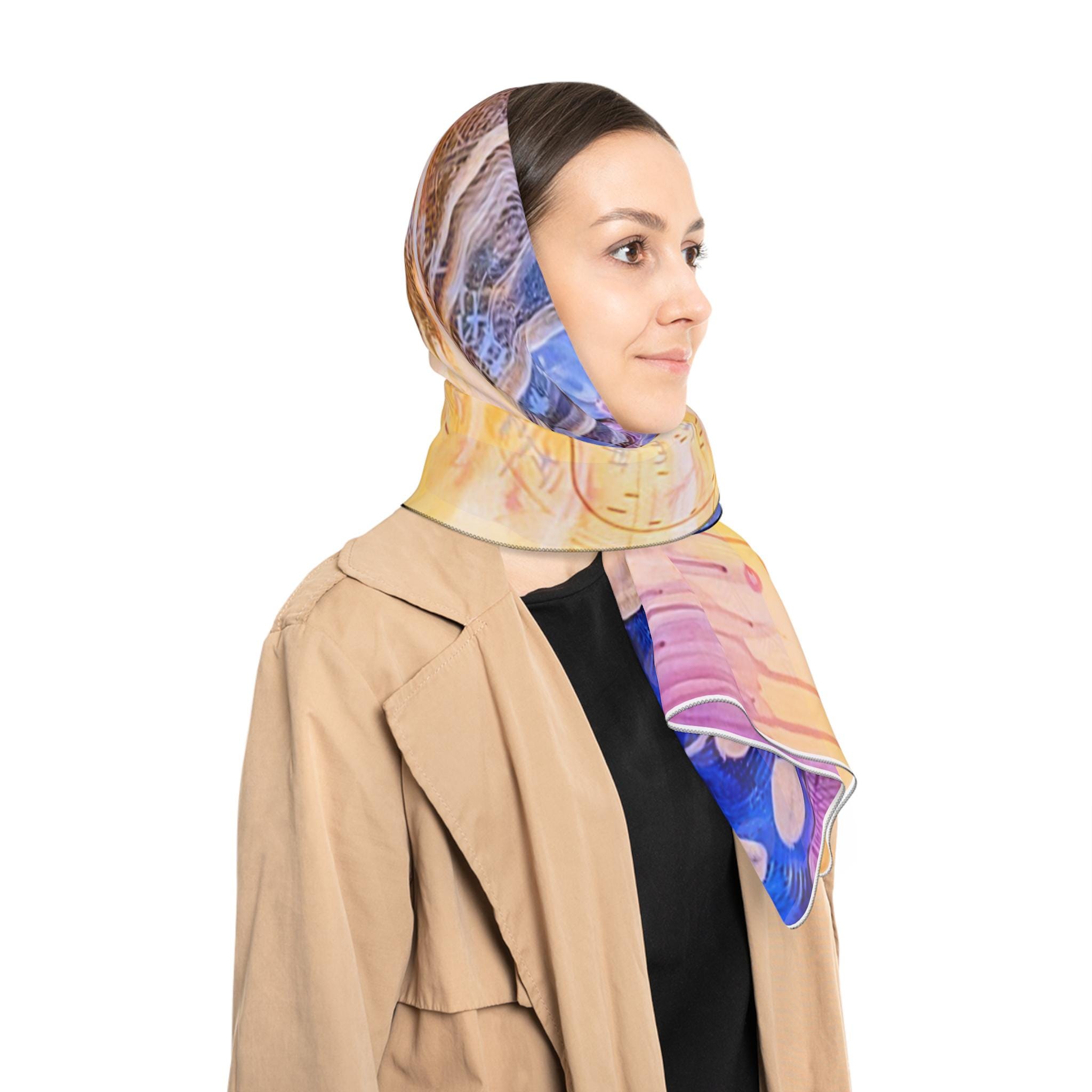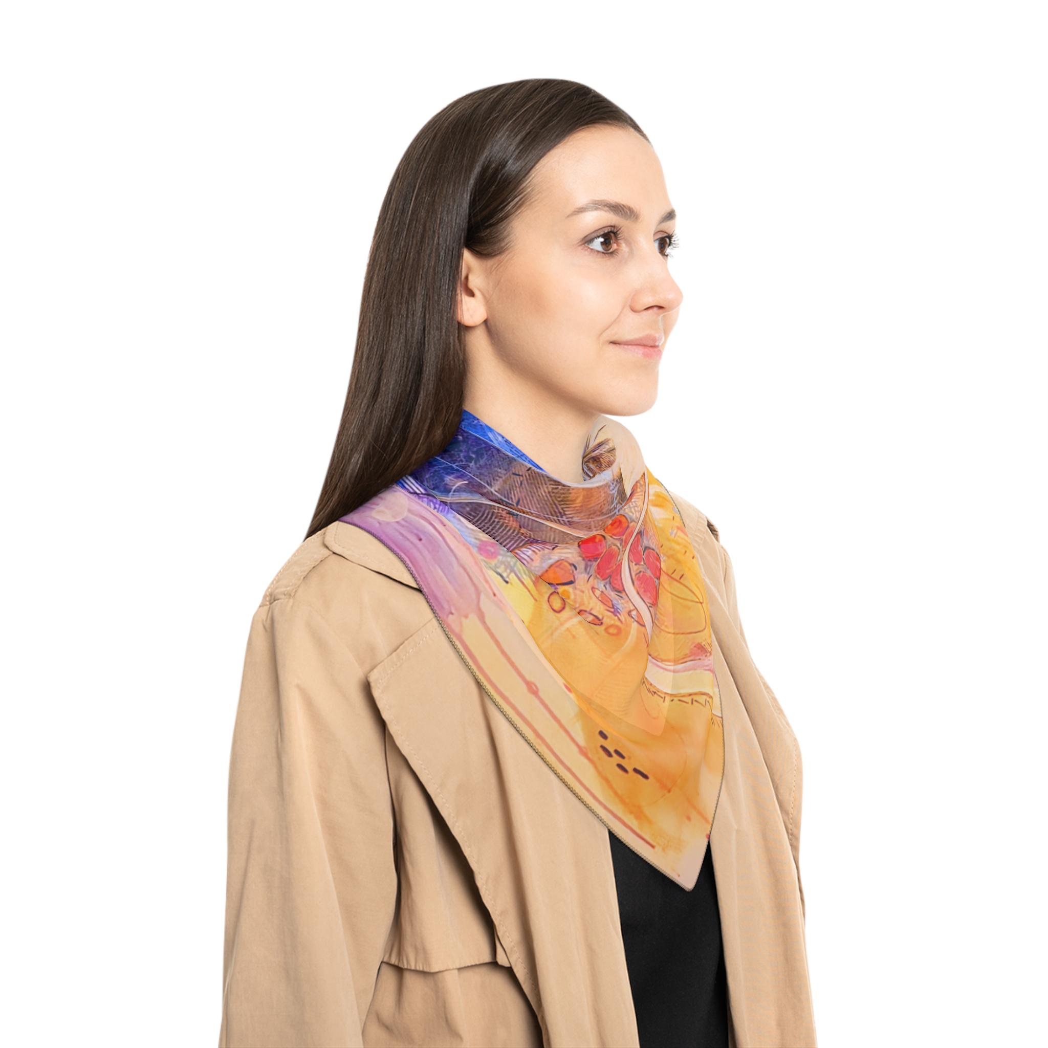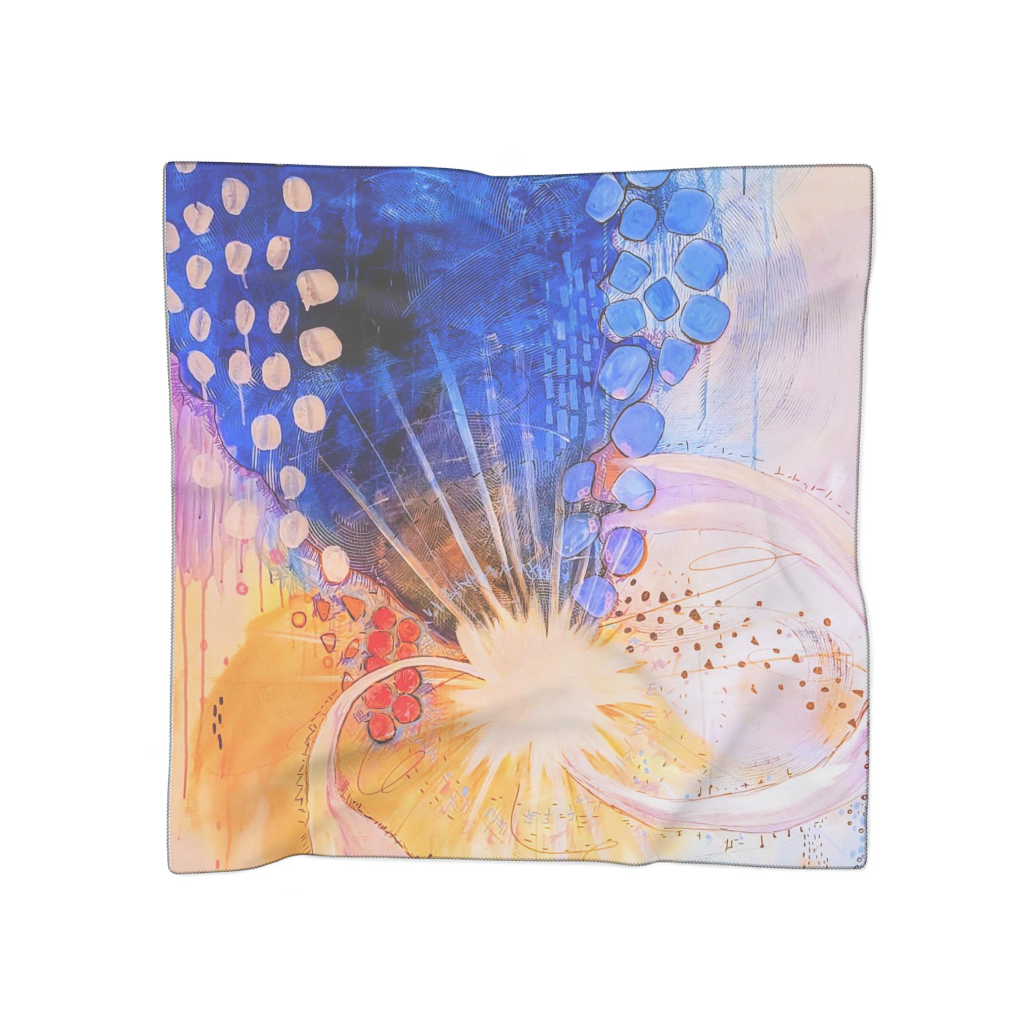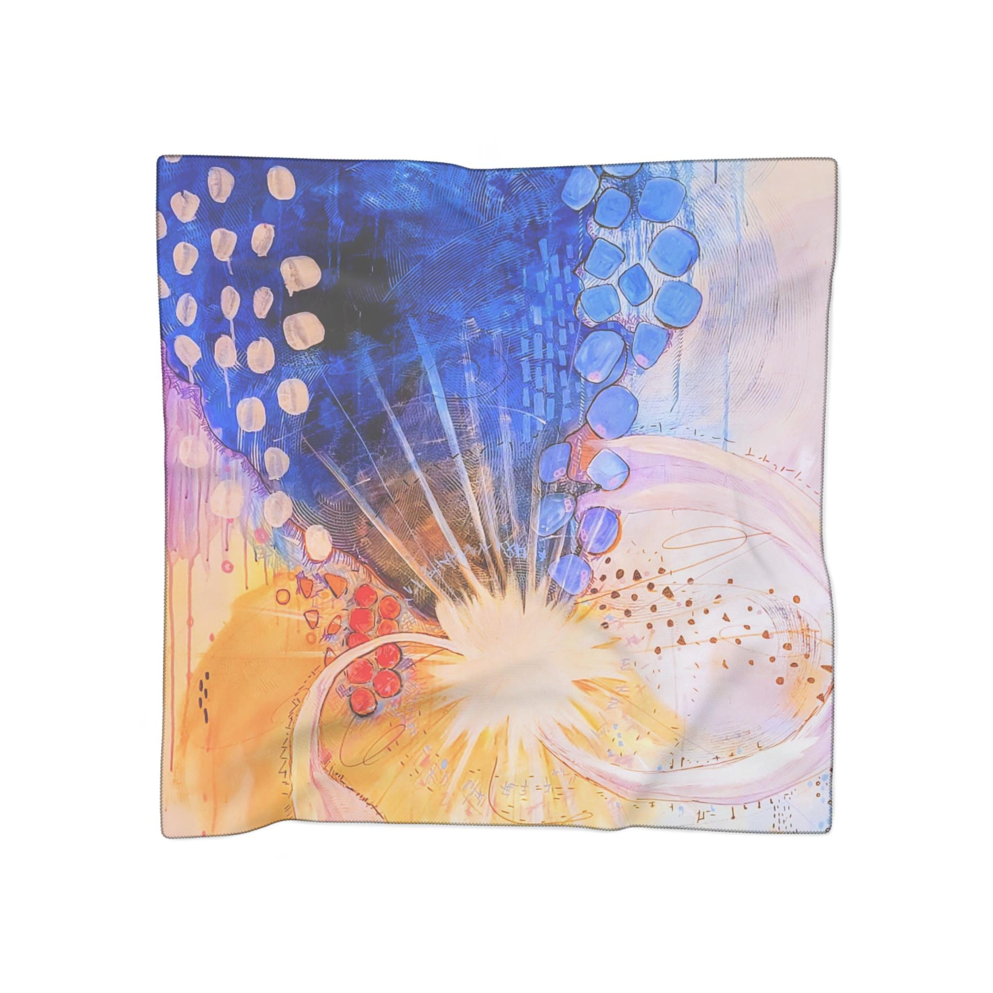 This sheer scarf features a print of the abstract acrylic on canvas painting "Spark" by Unhinged Artistry artist Jess Passaro. Extremely light and airy, it adds a touch of artistic flair to any outfit. Perfect for art enthusiasts and those who appreciate unique accessories. Ideal for gifting on birthdays, anniversaries, or holidays.